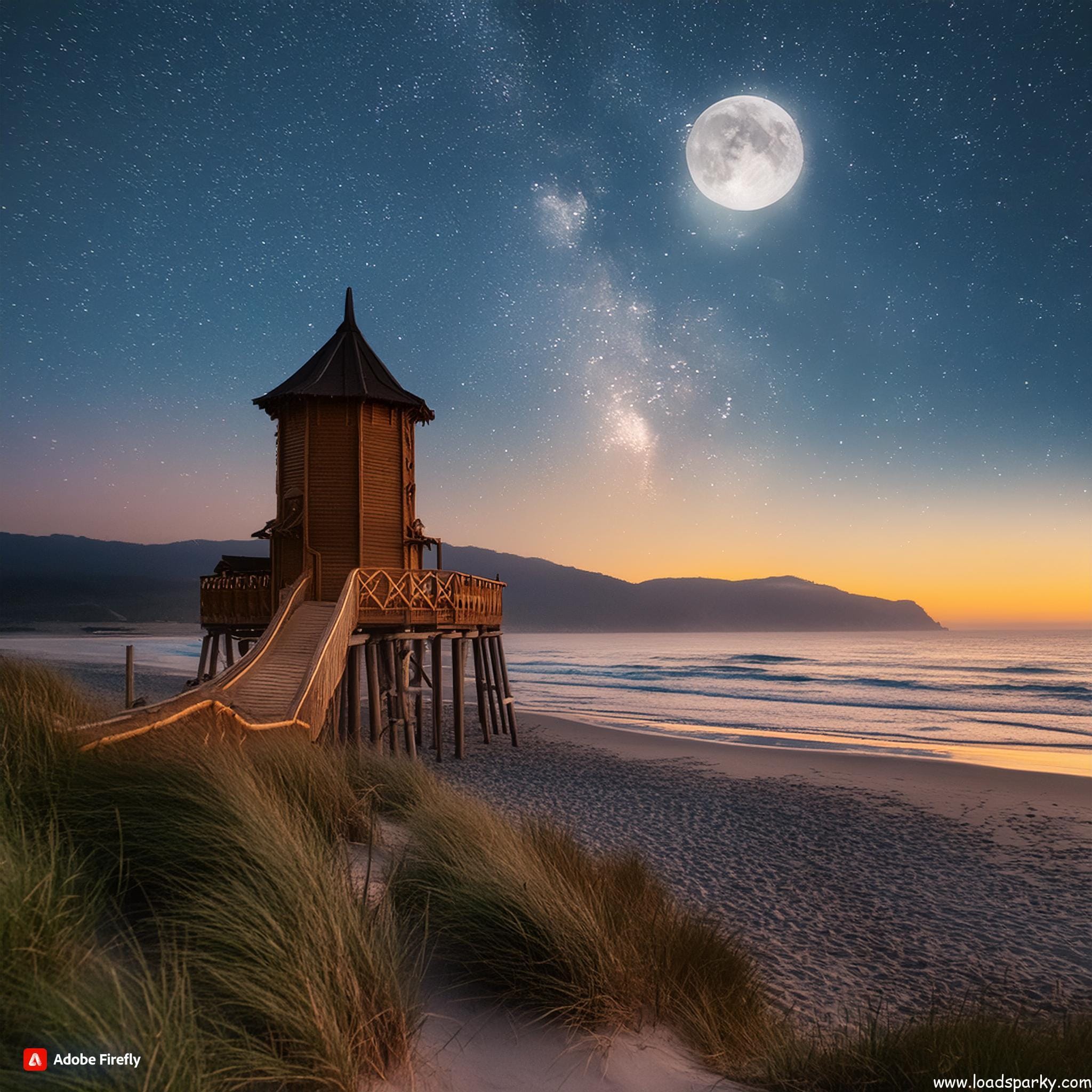 - Crescent moon and starry night sky
