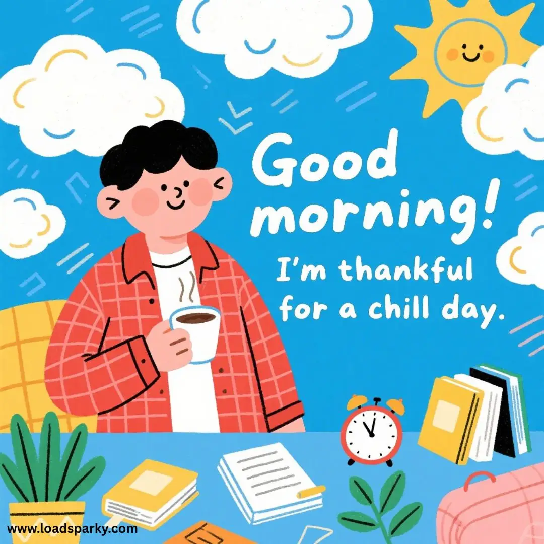 “Good morning! I’m thankful for a chill day.”